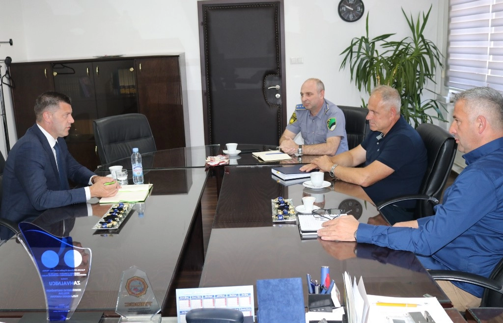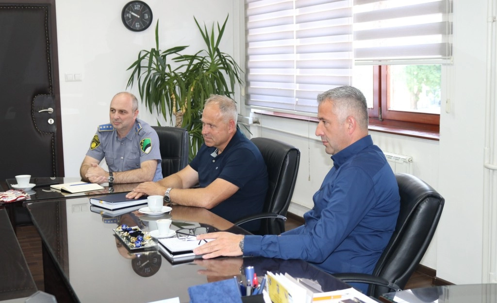 Ministar unutrašnjih poslova Tuzlanskog kantona Nedžad Bristrić i načelnik Sektora uniformisane policije Uprave policije MUP TK-a Nermin Alispahić sa saradnicima primili su danas, 23.6.2025. godine u radnu posjetu gradonačelnika grada Gračanica Sadmira Džebu.