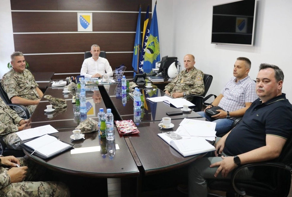 Ministar unutrašnjih poslova Tuzlanskog kantona Nedžad Bristrić i načelnik Operativnog centra Uprave policije MUP TK-a Adis Avdić održali su danas, 25.6.2025. godine u prostorijama MUP TK-a radni sastanak sa komandantom Drugog pješadijskog puka Oružanih snaga Bosne i Hercegovine brigadirom Farukom Ganićem i njegovim saradnicima.
